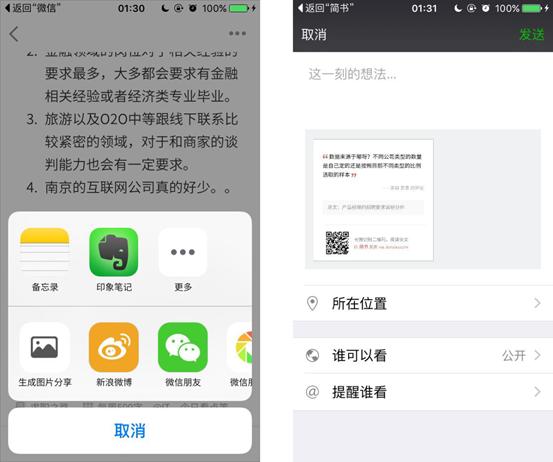 而且除了可(kě)以分享文章之外,評論也是可(kě)以進行(xíng)分享的,可(kě)以算(suàn)是我目前見過的軟件中,産生(shēng)分享鏈接或圖片中最精緻的了。很(hěn)符合簡書(shū)的氣質。