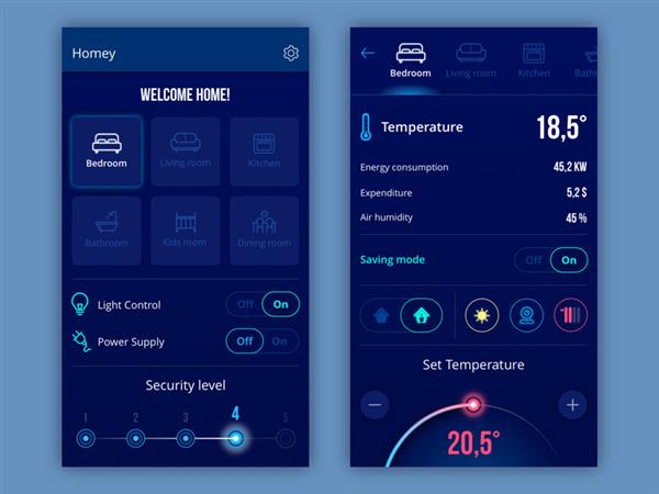 無論聽(tīng)起來(lái)多(duō)麽奇怪,消極的功能可(kě)見性在積極的用戶體(tǐ)驗中也起着很(hěn)大(dà)的作(zuò)用:它們根植于負面結果也是結果的事實。負面提示的目的是給用戶一個(gè)提示,在當下一些(xiē)元素或操作(zuò)是不可(kě)用的。例如,下面給出的家(jiā)居應用程序界面顯示了“卧室”按鈕是活躍的,而其他房(fáng)間(jiān)的按鈕是不可(kě)用的,故而它們呈現負面的功能可(kě)見性。“安全級别”也表示第 5 級是完全不可(kě)用的。
