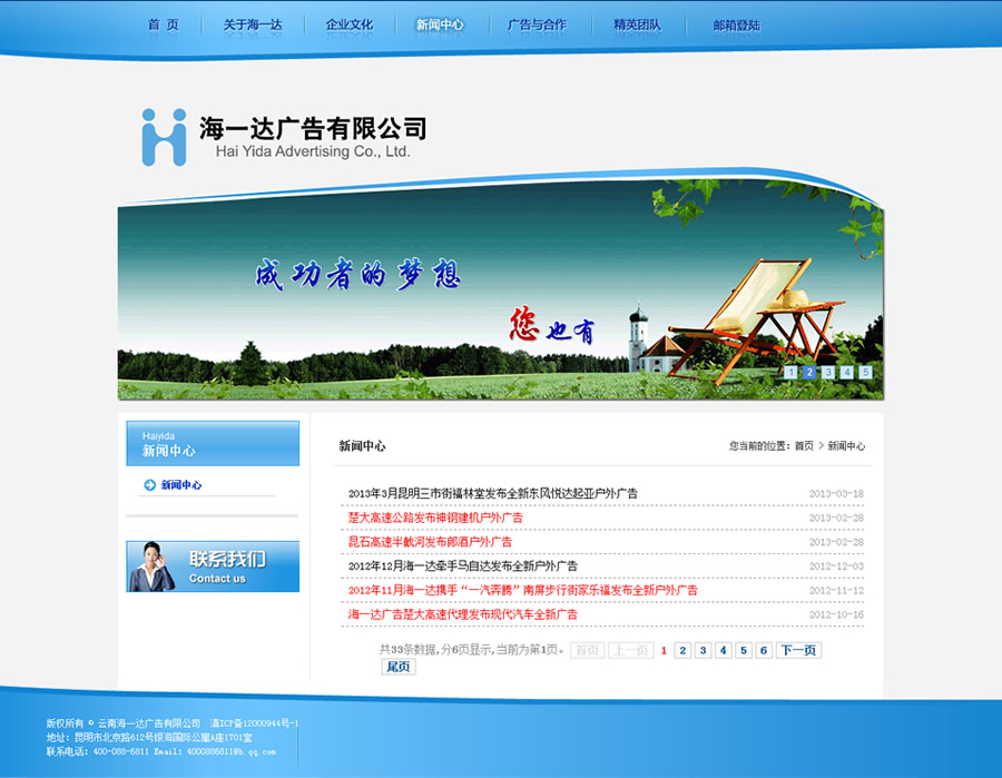 雲南網站(zhàn)建設優秀案例-海一達廣告作(zuò)為(wèi)一家(jiā)紮根于雲南的戶外媒體(tǐ)公司,主要緻力于雲南戶外媒體(tǐ)的經營、開(kāi)發、銷售和(hé)維護。在過去的2年中,海一達為(wèi)超過50多(duō)個(gè)國際、國內(nèi)知名品牌及4A廣告公司提供專業化的廣告媒體(tǐ)服務。 公司的戶外媒體(tǐ)主要分布于昆明(míng)、曲靖、楚雄、玉溪等雲南1-2線主要城市。 通(tōng)過我們不斷擴大(dà)的規模以及建設好的戶外媒體(tǐ)平台,竭力為(wèi)國際國內(nèi)品牌客戶提供高(gāo)效的全雲南戶外媒體(tǐ)資源。 我們涉及的媒體(tǐ)包括: 樓頂/牆面噴畫(huà)大(dà)牌,高(gāo)立柱,路面燈箱,LED屏幕等