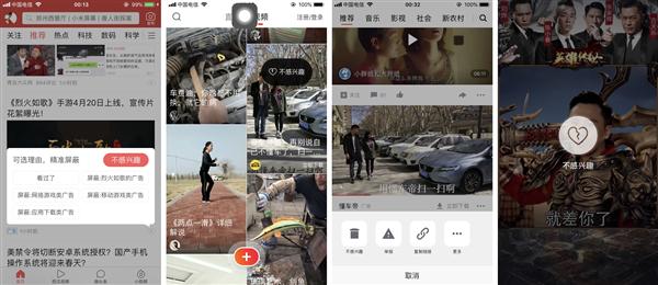 前三個(gè)當點擊關閉廣告,都會(huì)彈出不感興趣,點擊過後,廣告會(huì)消失在信息流中,廣告依然還(hái)是存在的,隻不過相關類型少(shǎo)了。可(kě)能出現的次數(shù)也會(huì)減少(shǎo),這種廣告其實對用戶影(yǐng)響并不是很(hěn)大(dà),用戶可(kě)以選擇忽略,觀看自己想要看的內(nèi)容。