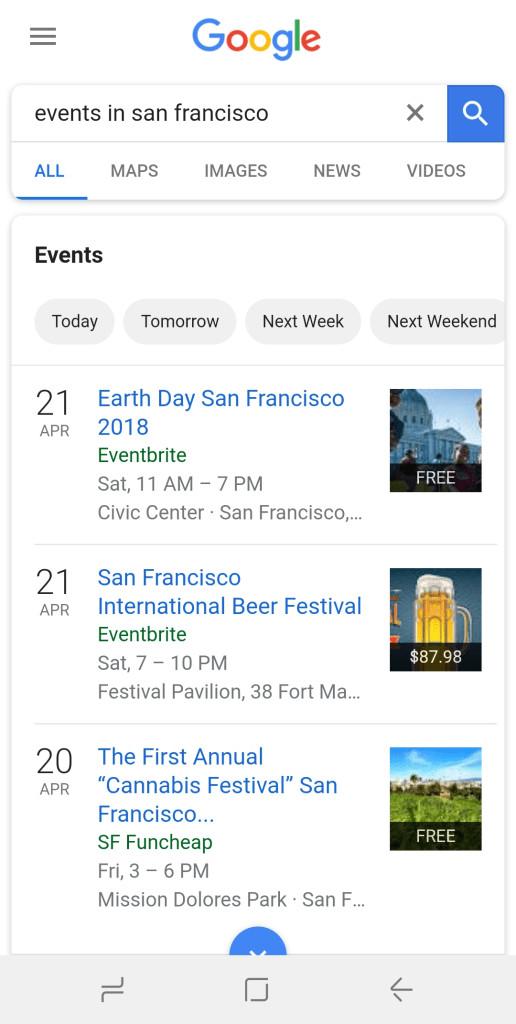 去年年末時(shí),谷歌(gē)設立一個(gè)專門(mén)區(qū)域,它相當于事件的聚合體(tǐ),這些(xiē)事件信息來(lái)自于第三方,比如Eventbrite。第三方将內(nèi)容提供給谷歌(gē),谷歌(gē)自己給事件排序。這樣的內(nèi)容光靠自己收集不了。如果市場(chǎng)符合以下條件,谷歌(gē)會(huì)尋求合作(zuò):