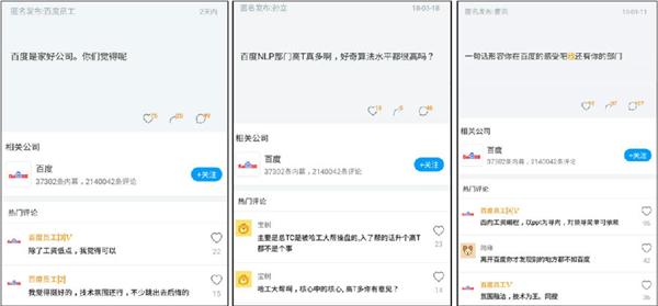 在脈脈上(shàng),經常能夠發現諸如“XX加班是不是很(hěn)嚴重”的提問,匿名者尤其是那(nà)些(xiē)認證來(lái)自對應公司的員工往往能夠給予最真實的回答(dá),“加班很(hěn)嚴重,女朋友(yǒu)都見不到面”、“還(hái)好吧(ba), 6 點就可(kě)以走人(rén)”等等,這些(xiē)真實的經曆可(kě)能比面試HR或者企業公關口裏講出來(lái)的更為(wèi)可(kě)信,這是一種平實的“鏡面反射”。