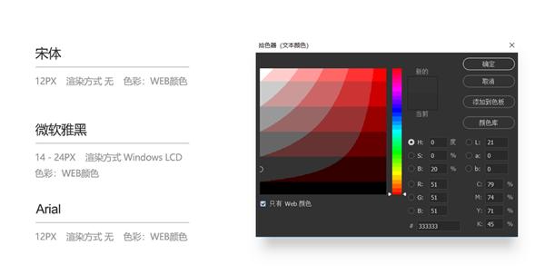 那(nà)麽總結一下,文字使用宋體(tǐ)、大(dà)小(xiǎo)為(wèi)12px、渲染方式選擇無。稍大(dà)一些(xiē)的字體(tǐ)使用微軟雅黑(hēi),大(dà)小(xiǎo)為(wèi)14-20px,渲染方式選擇Windows Lcd或銳利。另外,英文和(hé)數(shù)字需使用Arial字體(tǐ),渲染方式選擇無。
