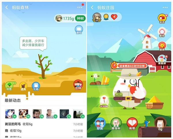 在螞蟻森(sēn)林中,用戶使用支付寶進行(xíng)消費,會(huì)為(wèi)自己的樹(shù)苗提供能量,并且最終長出能在沙漠種植的樹(shù)苗。而在螞蟻莊園中,用戶的支付寶消費則關聯成為(wèi)飼養小(xiǎo)雞必不可(kě)少(shǎo)的糧食,喂養小(xiǎo)雞得(de)到的愛(ài)心可(kě)以捐給一些(xiē)慈善機構。這兩款內(nèi)置于支付寶的「小(xiǎo)遊戲」,都是通(tōng)過将消費行(xíng)為(wèi)置換的方式,達成了增加支付寶用戶黏性,并進行(xíng)內(nèi)容傳播的目的。