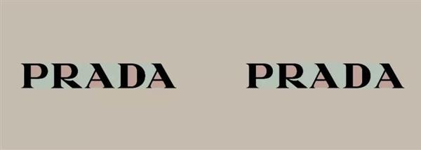 下面的 Prada 标識,黑(hēi)色是字面,紅色是字懷,藍(lán)色是字的留白。