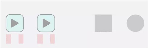 還(hái)有(yǒu)另外一種情況,如下:右邊灰色正矩形和(hé)正圓形同樣是100X100 像素,且上(shàng)邊和(hé)底邊是對齊的關系,但(dàn)是在視(shì)覺上(shàng)圓形比矩形顯得(de)更小(xiǎo)一些(xiē),對齊目标相對矩形也更向內(nèi)一些(xiē),這樣就需要把它整體(tǐ)變大(dà)調整,來(lái)保證視(shì)覺上(shàng)與矩形的統一。