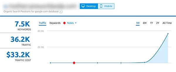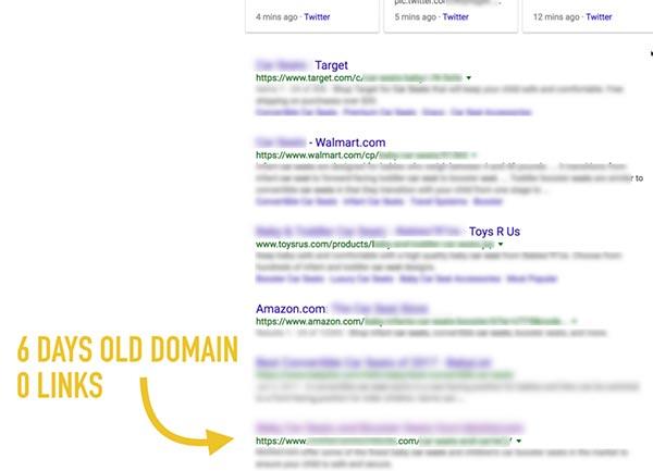48 小(xiǎo)時(shí)內(nèi),新域名就開(kāi)始被索引,并獲得(de)一些(xiē)長尾詞的排名: