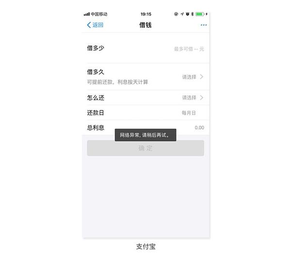 首先我們需要明(míng)确一個(gè)事實:不是每一種網絡故障都需要提示用戶。這裏的“不提示”其實是一個(gè)相對的說法,并不是真的不給用戶提示,而是隻有(yǒu)用戶執行(xíng)了請(qǐng)求數(shù)據的操作(zuò)才告知用戶網絡發生(shēng)故障。支付寶就是一個(gè)典型的例子,即使斷網了,用戶基本也感知不到。隻有(yǒu)用戶請(qǐng)求了新數(shù)據,才會(huì)以toast通(tōng)知用戶網絡異常。