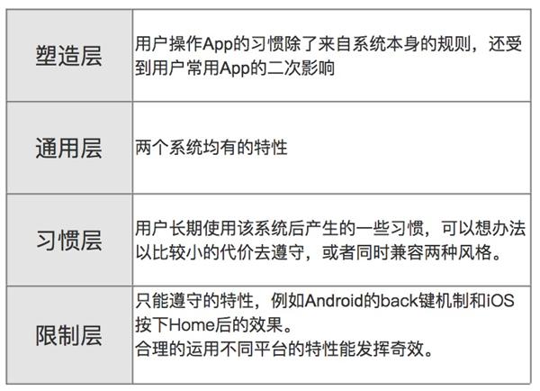 模型我将 iOS、Android 規範中的所有(yǒu)特性劃分到四個(gè)層次中,并采取不同的策略來(lái)決定是不是遵守它。