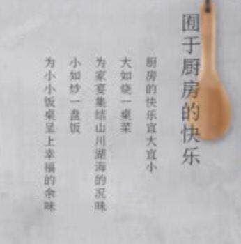 我相信大(dà)部分用戶并不會(huì)去試圖理(lǐ)解這個(gè)“囿于”的意思,人(rén)類受過訓練的閱讀理(lǐ)解習慣,是可(kě)以做(zuò)到跳(tiào)過不熟悉,局部理(lǐ)解熟悉部分的。所以大(dà)概大(dà)部分人(rén)對這句話(huà)不會(huì)仔細觀看,隻會(huì)有(yǒu)一個(gè)直觀印象,覺得(de)它是在表達“廚房(fáng)裏的快樂”。