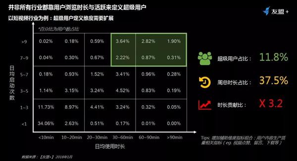 以短(duǎn)視(shì)頻行(xíng)業為(wèi)例,11.8%用戶,貢獻37.5%周時(shí)長?維度需擴展