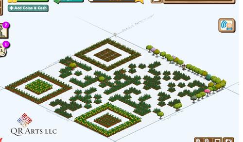 再來(lái)一枚更有(yǒu)創意的,用Farmville裏面的田地制(zhì)作(zuò)二維碼。