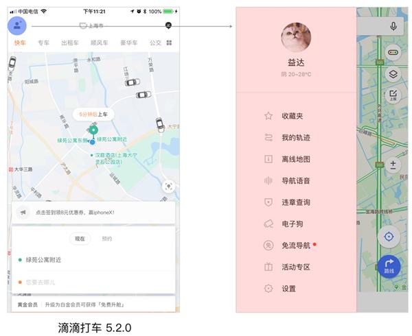 點擊左上(shàng)角的頭像,左側劃入功能入口。