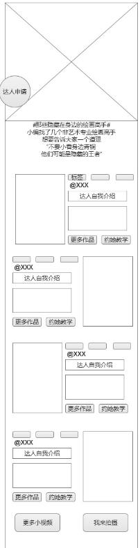 依舊(jiù)以小(xiǎo)視(shì)頻/達人(rén)專題為(wèi)例,制(zhì)作(zuò)上(shàng)方原型圖的時(shí)候,我就發現,活動需要達人(rén)的視(shì)頻,還(hái)需要達人(rén)的照片做(zuò)視(shì)頻的封面,或許還(hái)需要達人(rén)的一句自我介紹,那(nà)這時(shí)候就要及早梳理(lǐ)清晰需求,給到相應負責人(rén)。