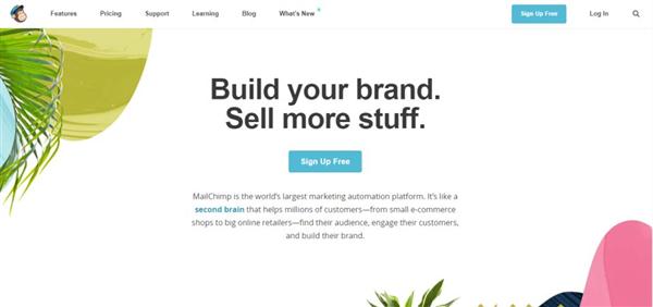 左上(shàng)角大(dà)猩猩形象的網站(zhàn)logo深入人(rén)心,清楚地表明(míng)這個(gè)注冊頁面是由MailChimp創建的。右上(shàng)角并排的藍(lán)底注冊按鈕和(hé)白底登陸按鈕顔色反差,提高(gāo)潛在用戶注冊率。并且,“免費注冊” 一詞也很(hěn)可(kě)能會(huì)立即引起遊客的興趣。