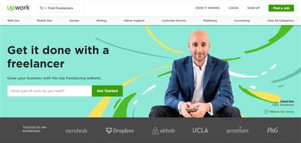 着陸頁設計(jì)最好的做(zuò)法是将最主要的CTA按鈕放在首位。顯然Upwork将這一點利用的很(hěn)好。從他們的CTA設計(jì),很(hěn)容易看出他們的目标是吸引企業和(hé)自由職業者的注冊。