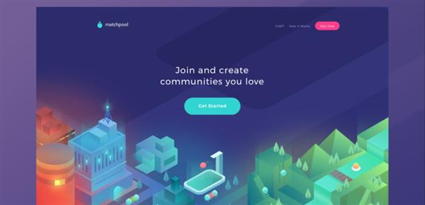 同樣是扁平化設計(jì)風格的網站(zhàn),Matchpool整個(gè)頁面的顔色搭配顯得(de)十分清新活潑。互相靠近的小(xiǎo)精靈或是自由活動的小(xiǎo)精靈都體(tǐ)現出社區(qū)的概念。簡短(duǎn)的文案也告訴用戶可(kě)以自由創建屬于自己的社區(qū)。