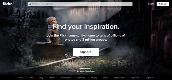 衆所周知,Flickr是一個(gè)照片分享或存儲的平台,無論是業餘的或是職業的攝影(yǐng)師(shī)都可(kě)以加入并在其中得(de)到靈感。它的着陸頁設計(jì)采取了圖片輪播的方式展示用戶的攝影(yǐng)作(zuò)品。随圖片滾動的作(zuò)品署名和(hé)作(zuò)者姓名讓人(rén)對作(zuò)者及作(zuò)品産生(shēng)無限的好奇心,忍不住想了解作(zuò)者更多(duō)的作(zuò)品。這也是着陸頁的魅力之一。