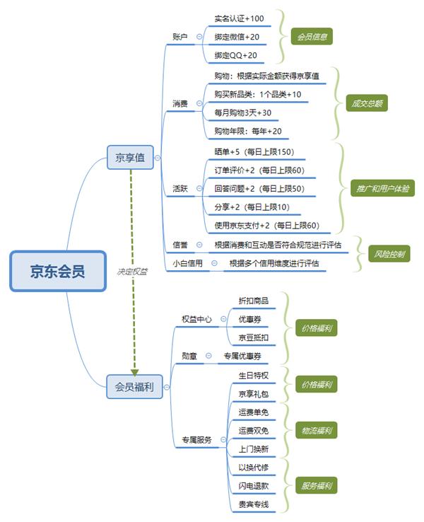 經過前面一系列的分析,現在對京東的會(huì)員系統進行(xíng)一下總結。