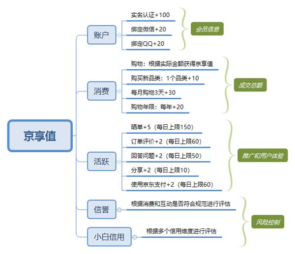 消費部分由會(huì)員在京東商城上(shàng)的消費行(xíng)為(wèi)進行(xíng)量化得(de)出,這裏的每一個(gè)京享值都是會(huì)員用真金白銀換來(lái)的。