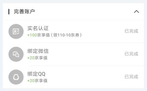 賬戶部分是京東獲取用戶信息的途徑之一,鼓勵用戶進行(xíng)實名認證和(hé)綁定微信和(hé)QQ。