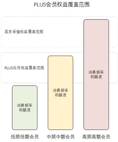 單從名字就能看出,PLUS會(huì)員的價格福利、物流福利、服務福利與京東會(huì)員中高(gāo)京享值的權益如出一轍,提供的福利近似、玩法也幾乎相同,加之即開(kāi)即享的特性推斷PLUS會(huì)員的目标用戶主要是京東會(huì)員中的中部用戶。