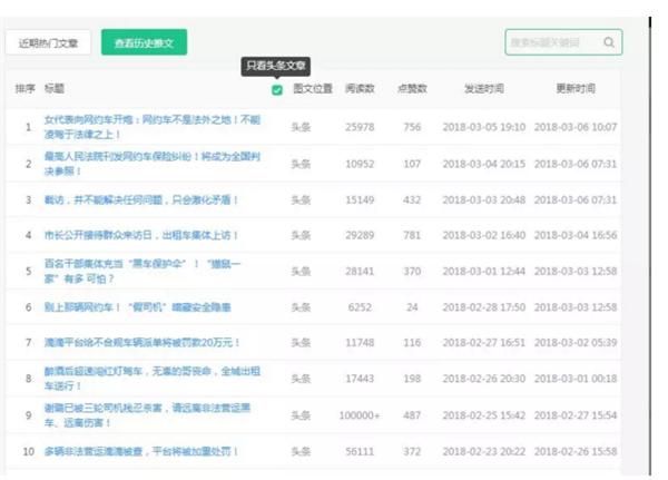 的哥(gē)的姐驿站(zhàn)公衆号是主要面向出租車(chē)群體(tǐ),以提供資訊及實用幹貨為(wèi)主,小(xiǎo)編以為(wèi)它們此次能夠上(shàng)榜主要原因是公衆号持續輸出爆文提高(gāo)用戶活躍度,他們通(tōng)過多(duō)篇中小(xiǎo)爆文提高(gāo)公衆号文章的打開(kāi)率,這樣的運營手法值得(de)大(dà)家(jiā)借鑒。