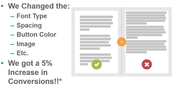 他們分享了一個(gè)例子,其中大(dà)師(shī)改變了按鈕顔色,或者字體(tǐ)間(jiān)距,或者banner圖。然後擺出增長數(shù)字,付費廣告的轉換率提升了2—7%。