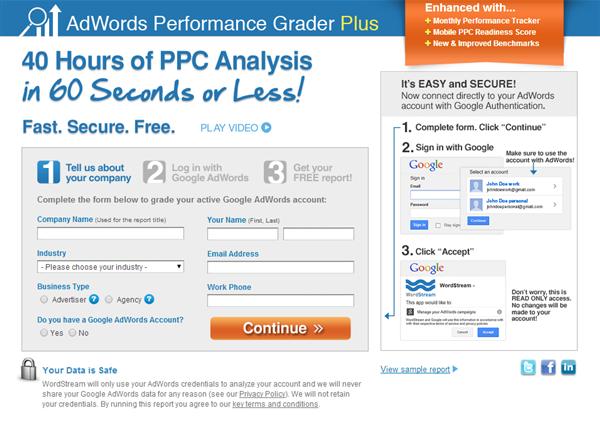 我們的方法是免費的AdWords分級器(qì),它實際上(shàng)提供給用戶一個(gè)帳戶評估報告,并提出建議,幫助用戶改進使用AdWords的策略,這對我們來(lái)說是一個(gè)巨大(dà)的轉折點。