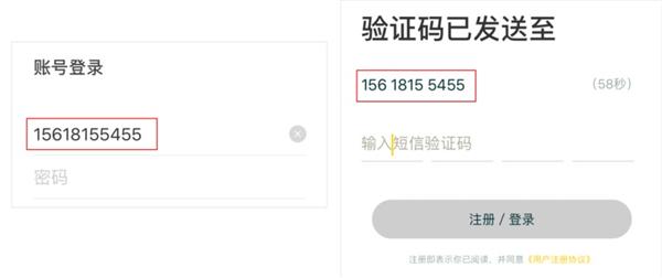 使用手機号獲取驗證碼是目前最常用的注冊登錄方式,這種方式的優勢不必多(duō)說,相信大(dà)家(jiā)都很(hěn)熟悉流程,通(tōng)過發送短(duǎn)信獲取驗證碼在60- 90 秒(miǎo)內(nèi)進行(xíng)注冊登錄,這麽做(zuò)是為(wèi)了确認用戶擁有(yǒu)該手機号的使用權。手機号+密碼是用戶常用的方式,而手機号+驗證碼是比較簡便的方式。這裏注意一點的是在輸入手機号後,為(wèi)了讓用戶查看是否輸入正确,建議手機号顯示樣式為(wèi)3-4- 4 模式(比如156 1815 5555),這些(xiē)都是細微之處,雖然無關大(dà)雅,但(dàn)是可(kě)以看出一個(gè)産品的用心之處,比如下圖可(kě)以對比一下,明(míng)顯圖二更優。