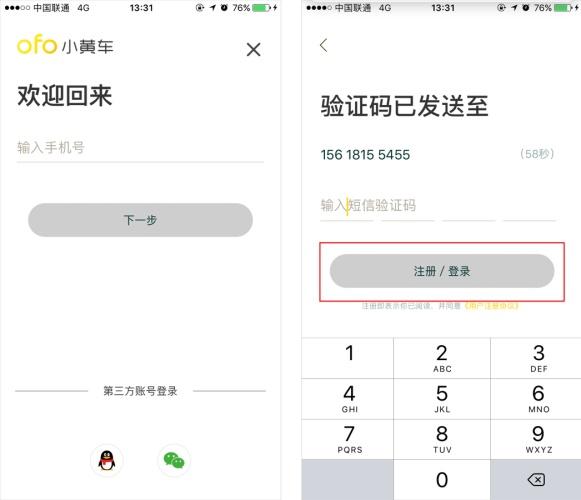 這種方式和(hé)分步驟注冊類似,将注冊和(hé)登錄合到一起,不管你(nǐ)是否有(yǒu)注冊,隻要輸入手機号再填寫驗證碼,成功後即可(kě)使用産品,比如小(xiǎo)黃車(chē)就是使用這一方式。
