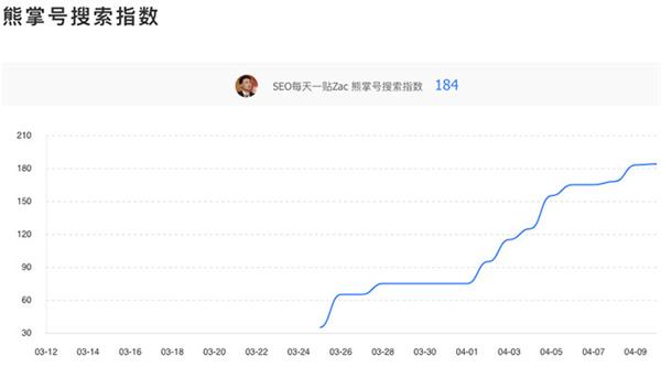 我從 3 月底開(kāi)始完成任務,在 4 月 9 号之前,分幾次,按類别提交了所有(yǒu)值得(de)提交的頁面。這期間(jiān)熊掌号搜索指數(shù)變化曲線如下圖: