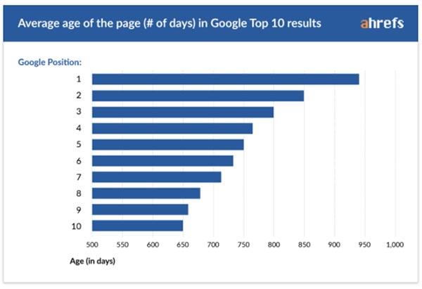 排名在前面的頁面有(yǒu)多(duō)老?