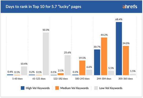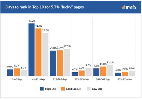 5.7%幸運獲得(de)排名的頁面,要花(huā)2- 6 個(gè)月獲得(de)排名