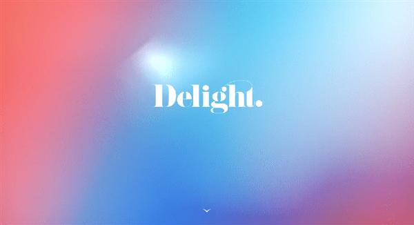 Delight 這個(gè)網站(zhàn)應該會(huì)讓你(nǐ)感到好奇。明(míng)亮的色彩和(hé)有(yǒu)趣的排版是誘人(rén)的,想要了解更多(duō),底部帶有(yǒu)動效的箭頭會(huì)引導你(nǐ)往下浏覽。這種極簡主義的設計(jì)足夠簡單,有(yǒu)趣,因為(wèi)它會(huì)讓你(nǐ)的用戶對于後面的信息發生(shēng)興趣。