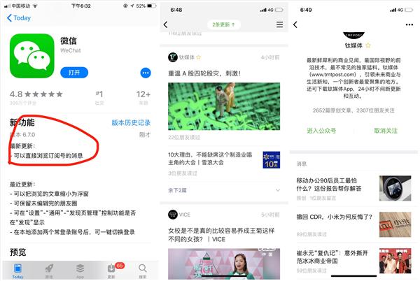 早在去年十月,就有(yǒu)爆料稱微信正磨刀霍霍地試探訂閱号體(tǐ)系的改版,将傳統的折疊方式變為(wèi)更直觀的信息流模式,也就是說訂閱号打開(kāi)就是信息流內(nèi)容,而無需先進入訂閱号“首頁”。