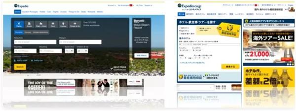 △ 左邊為(wèi)美國的 Expedia ,右邊為(wèi)日本的 Expedia. 2014