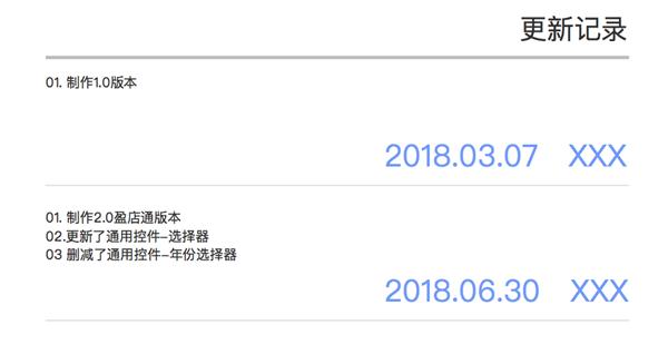 因為(wèi)交互規範是需要根據項目不斷完善更新的,所以會(huì)有(yǒu)很(hěn)多(duō)叠代的記錄,及時(shí)記錄更新可(kě)以方便其他設計(jì)師(shī)、前端工程師(shī)知道(dào)我們更新了什麽內(nèi)容,及時(shí)同步給整個(gè)團隊。