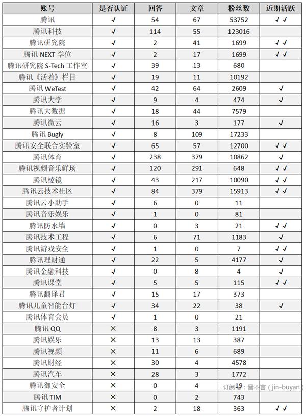表騰訊開(kāi)通(tōng)知乎賬号列表