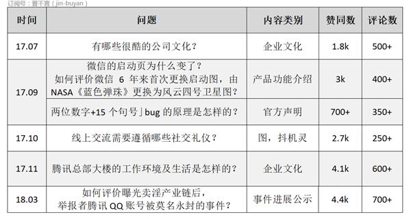 還(hái)有(yǒu)就是關于騰訊企業文化或工作(zuò)環境的文章,同樣能激起讀者的好奇心,這點在熱門(mén)回答(dá)和(hé)爆款文章中都得(de)到了印證。
