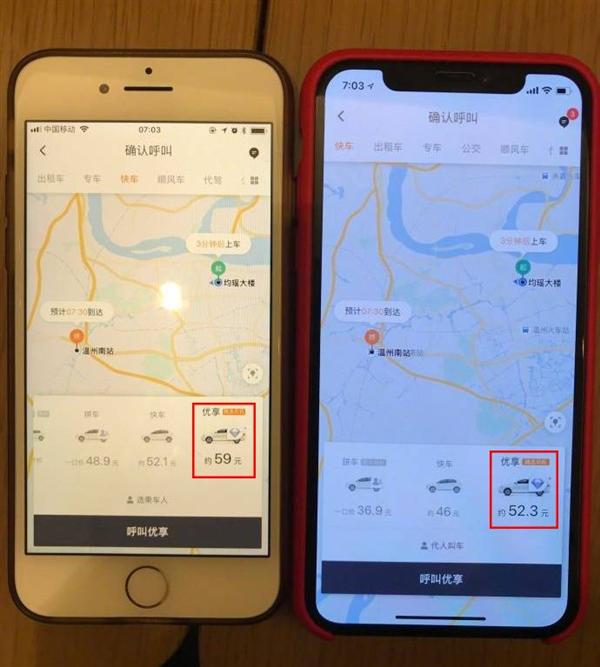 有(yǒu)微博大(dà)V爆料稱,用滴滴打車(chē)時(shí),同樣行(xíng)程、同樣叫車(chē)時(shí)間(jiān),顯示的價格卻不一樣。不僅如此,長距離出行(xíng)時(shí),蘋果手機打車(chē)比安卓手機打車(chē)貴不少(shǎo)。