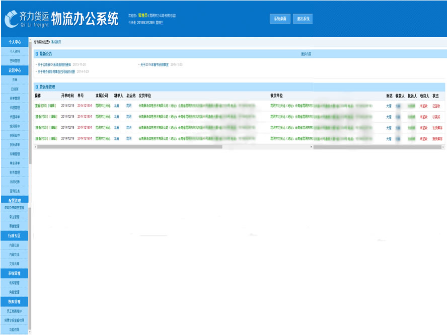 齊運物流辦公系統
