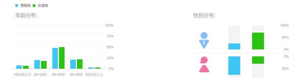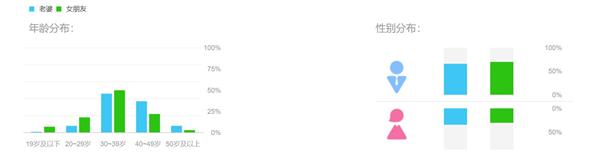 上(shàng)圖中的搜索關鍵詞為(wèi)男朋友(yǒu)和(hé)女朋友(yǒu),可(kě)以發現:從年齡上(shàng)講,搜索男朋友(yǒu)和(hé)女朋友(yǒu)的用戶沒有(yǒu)太大(dà)差别。但(dàn)是從性别上(shàng)來(lái)講,搜索男朋友(yǒu)的多(duō)為(wèi)女性,搜索女朋友(yǒu)的多(duō)為(wèi)男性。