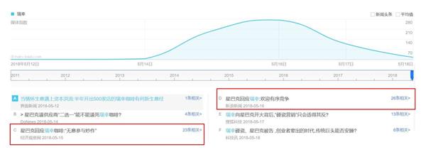 看資訊關注:如下圖所示:通(tōng)過百度指數(shù)可(kě)以知道(dào)一個(gè)關鍵詞資訊關注度的變化。下圖為(wèi)瑞幸咖啡的資訊關注圖,可(kě)以看出:資訊關注度高(gāo)的時(shí)候往往是有(yǒu)一些(xiē)重大(dà)新聞的時(shí)候,例如該例子中峰值處是星巴克回應瑞幸的時(shí)間(jiān)。