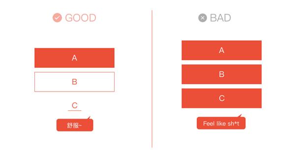 合理(lǐ)分配內(nèi)容,讓用戶浏覽起來(lái),知道(dào)你(nǐ)頁面有(yǒu)些(xiē)什麽內(nèi)容,哪些(xiē)是重點。我們常常會(huì)提到頁面缺少(shǎo)重點,也許是因為(wèi)什麽都想突出,什麽都想重點,最後什麽都不是重點(So sad…)。