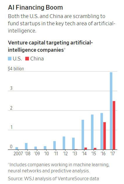 VentureSource的數(shù)據顯示,美國投資人(rén)去年對人(rén)工智能初創公司的投資仍然比中國多(duō),去年在該領域牽頭了 40 億美元的融資,為(wèi)上(shàng)一年的兩倍。中國投資人(rén)去年牽頭了約 25 億美元的人(rén)工智能風險投資,而在幾年前中國投資人(rén)在該領域的投資規模還(hái)不到 1 億美元。