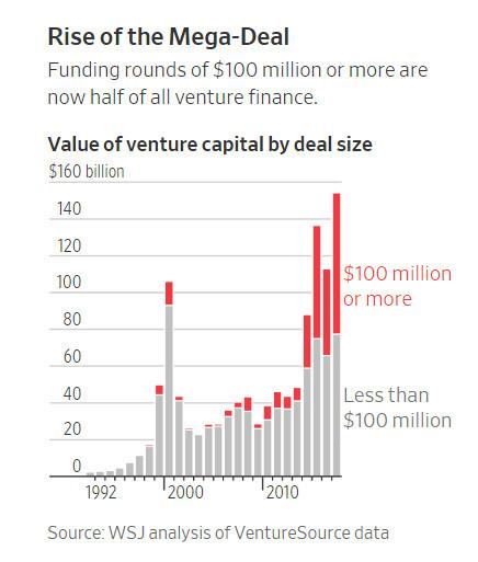 規模達到或超過 1 億美元的風投案例大(dà)幅增長