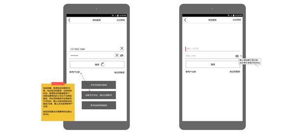 密碼登錄考慮到向後兼容,老用戶的賬号以密碼登錄;也是适應本期的新用戶注冊。同時(shí)标配忘記密碼,也可(kě)切換新用戶注冊,或驗證碼登錄,這些(xiē)元素的布置考慮,是基于流程的。