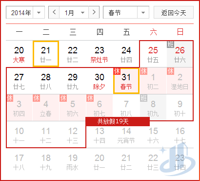 2014年1月25日至2014年2月12日為(wèi)春節放假時(shí)間(jiān),2014年2月13日正式恢複正常上(shàng)班。