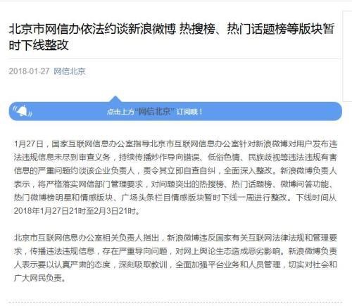 網信辦約談新浪微博:熱搜榜、問答(dá)等多(duō)闆塊下線一周整改